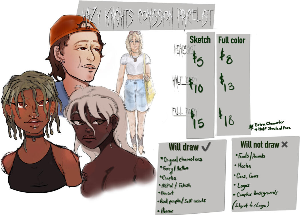 Prices are subject to change over time.✦ I take payment once the initial sketch is completed.✦ I have the right to deny service if I’m not comfortable with your project.✦ If your comm has a date it needs to be due by, please let me know upon ordering.